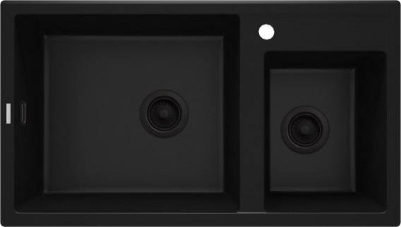 Granitowy zlewozmywak 2-komorowy Eridan charakteryzuje się wieloma praktycznymi, trwałymi cechami, wynikającymi z zastosowania najwyższej jakości materiału naturalnego pochodzenia powierzchnia jest zgodnie z normą EN 13310 nie tylko odporna na uderzenia, ścieranie (usunąć), przebarwienia i wysoką temperaturę (do 250 stopni C.), ale także odpycha cząsteczki płynów, dzięki czemu zlew pozostaje czysty. Co więcej, granitowa (usunąć) powierzchnia nie przyjmuje także zapachów, jest odporna na szok termiczny, dłużej pozostaje czysta. Zlewozmywak Eridan w wygodnej wersji z 2 komorami - większą i mniejszą, w kolorze głębokiej, eleganckiej czerni, sprawdzi się doskonale w kuchniach urządzonych w nowoczesnym, minimalistycznym, loftowym stylu. Zlew posiada fabryczny otwór na baterię i dodatkowy podfrezowany otwór pod montaż pokrętła korka automatycznego, przelew i automatyczne zamknięcie odpływu. W zestawie znalazł się także syfon Spacesaver z możliwością podłączenia do zmywarki, zaprojektowany tak, by zajmował nawet 50% mniej miejsca niż standardowe syfony.