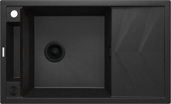 Granitowy zlewozmywak Magnetic posiada magnetyczne właściwości, które pozwalają na szybkie zorganizowanie jego przestrzeni pomocnymi akcesoriami - bez dodatkowych mocowań. Jest to model z jedną pojemną komorą oraz praktycznym ociekaczem z motywem jodełki, który przyspiesza odprowadzanie wody. Zlewozmywak wyposażony został w magnesy, dzięki którym na bok komory nałożyć można stalową maskownicę. Elegancka maskownica oddziela komorę od bocznej półki, która posłuży nam np. na osuszanie sztućców. Zamiast maskownicy do zlewozmywaka można zamontować koszyczki oraz reling i haczyk, które są do dokupienia w ofercie Deante.