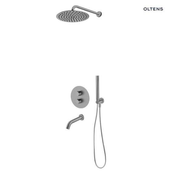 Katla Zestaw Oltens Katla bateria podtynkowa termostatyczna z wylewką wannową Molle z deszczownicą 30 cm Vindel i kompletem prysznicow