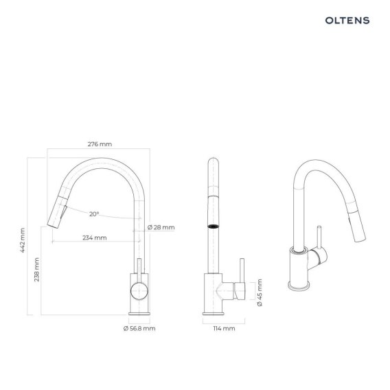 • Litla Oltens Litla bateria kuchenna stojąca z wyciąganą wylewką nikiel 35204910