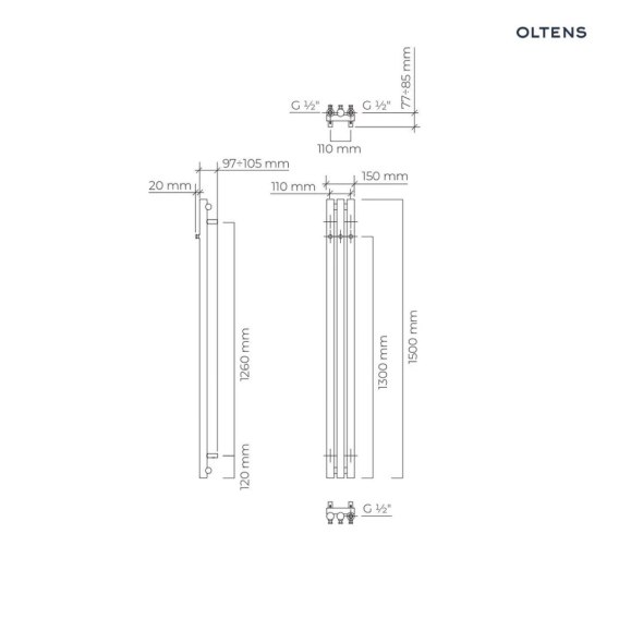 Stang Oltens Stang grzejnik łazienkowy 150x15 cm nikiel 55019910